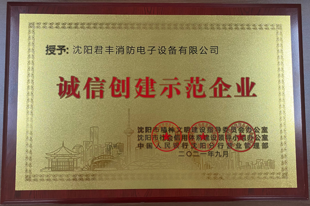 按照《沈陽(yáng)市關(guān)于推進(jìn)誠(chéng)信制度化加強(qiáng)社會(huì)信用體系建設(shè)工作方案》的要求,根據(jù)皇姑區(qū)推進(jìn)誠(chéng)信制度化加強(qiáng)社會(huì)信用體系建設(shè)的工作安排,決定在全區(qū)各行業(yè)企業(yè)中深入開(kāi)展2021年誠(chéng)信示范企業(yè)創(chuàng)建活動(dòng),經(jīng)過(guò)嚴(yán)格評(píng)選,沈陽(yáng)君豐消防電子設(shè)備有限公司榮獲“誠(chéng)信創(chuàng)建示范企業(yè)”榮譽(yù)稱號(hào),并于2022年8月23日上午10時(shí)參加了授牌儀式。君豐公司將秉承誠(chéng)信經(jīng)營(yíng)、科技創(chuàng)新的理念,求真務(wù)實(shí),不懈努力,回饋社會(huì),為消防產(chǎn)業(yè)的發(fā)展貢獻(xiàn)全部力量!