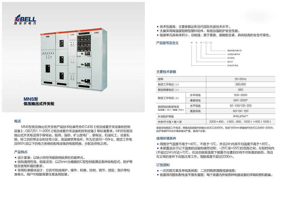MNS型低壓軸出式開關(guān)柜產(chǎn)品技術(shù)標(biāo)準(zhǔn)符合IEC439等標(biāo)準(zhǔn)要求。MNS型低軸出式開關(guān)柜適用于核電站、船用。